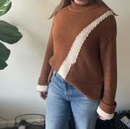 More fun than your average sweater with the side slit and fun color block. Loved this piece.