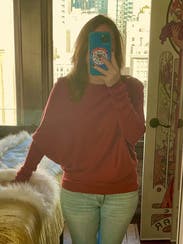 This is one of the first sweaters I rented, I loved it and wore it 3 times. After returning I kept thinking about it and rented it again. Finally when it became available again, I bought it! The color is beautiful, the fit is flattering. I love that it is loose under the arms, but fitted on the forearms. It makes it very breathable. Perfect for LA fall. Dress up or down. I wear it to the office and out on date nights.