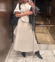 This is a very nice top - it’s super crisp almost stiff, and quite basic but a nice shape. I found it difficult to style however as in my opinion its structure and volume would pair best with a skinny pant or pencil skirt, neither of which I wear a lot of at the moment. But it’s great over a pair of jeans for an elevated weekend look.