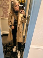 Wondering why this is so expensive but it is a lovely top. I love turtlenecks and this was a good change from my usual plain ones. It’s a bit thin, not as thick as say, a ribbed turtleneck. XS worked fine and wasn’t overstretched, as sometimes I’m between XS and S due to my bust.