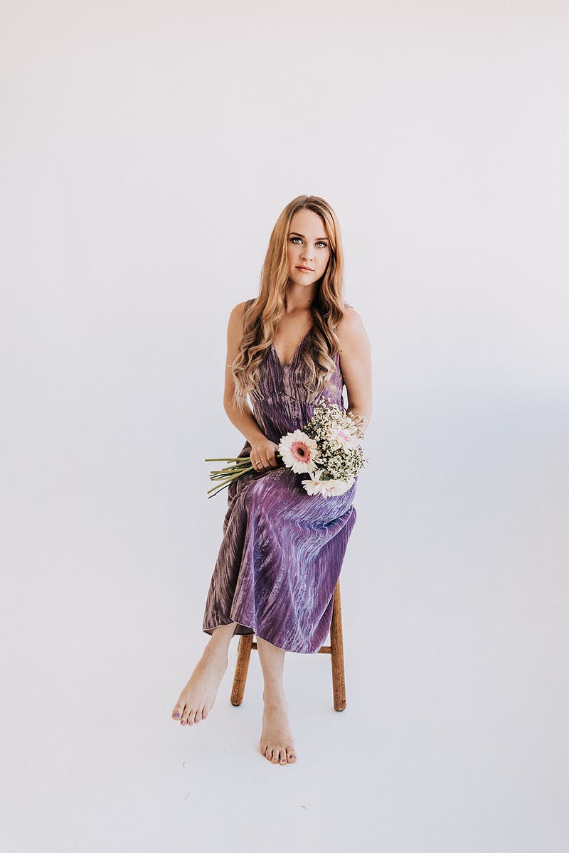 Purple velvet (100% Polyester). Hourglass. V-neck. Sleeveless. Side zipper closure. 50" from shoulder to hemline. Imported.