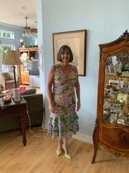Wore to the oaks races and it was perfect for the event. On me, it fit nicely but had room around the midriff which made it comfortable to wear all day. Ended up pairing it with bright green hat and shoes. Not what I would normally do, but worked for a day at the race track.