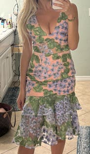 So many compliments! Wore this to a summer wedding and loved it! Definitely glad I got the bigger size. I would size up if you have bigger hips/booty! It was a bit tight when sitting down as well, especially down near the knees where the tier detail begins. Also, wouldn’t recommend wearing a bra - it was popping out a lot and had to make sure it wasn’t showing when taking pictures lol. Still a total knockout, though! Would recommend!