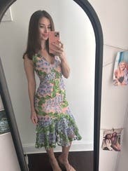 I got both the 4 and 6 and definitely needed the 6 because it is tight in the hips. Loved it!! Perfect for a spring event! Feminine and flirty!