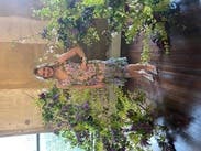 I loved this dress and thought it was beautiful in person. Received many compliments on the design and pattern, and it’s one of my favorite rentals to date. I’m a little smaller on top and relatively a little bigger the middle and bottom so this dress was loose around my chest/armpits. Dress tape was a life saver to pull back the extra fabric. I didn’t find this dress difficult to dance in, but it is a tight-ish fit so don’t plan on doing the splits or walking for miles in it!