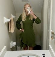 I got a lot of wear out of this dress! It’s comfortable and flattering. And can easily go from day to night. The sleeves and ruffles elevate this from just a plain olive green dress. Fit great and slight stretch.