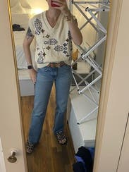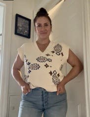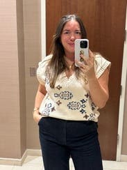 Cute sweater vest for fall. I wore solo and layered with button down underneath and got tons of compliments. Cute print that can be styled many ways.