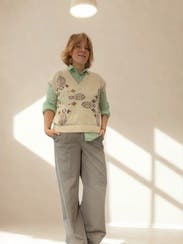 Weekend Max Mara’s Crusca Knit Vest makes a breezy statement in ivory jacquard—playful yet polished, it’s sunshine in top form. For warm-weather flair, pair it with high-waisted denim shorts and minimalist sandals for a relaxed, refined look.