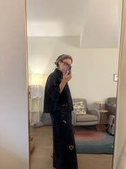 Another prime example of why I’m a long time member of RtR. These eye catching, comfy af trousers are what imagine Katherine Hepburn would wear today. They’re slouchy (I sized up to a 6 from my normal 4) and kind of a coarse woven poplin, but dang - they are comfortable. Length was just shy of floor dragging. Elastic in the back of the waistband. Get these for a cycle and wear the heck out of them!