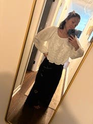 Beautiful fabric and embroidery. Lots of compliments I wish I would've gotten one size smaller. The waistband has some elastic and I think they could've been a little more fitted around my waist when I wore it with a bodysuit. Definitely liked it better with the vest as shown in my photo because it hit the fact that they were a little bit too big.