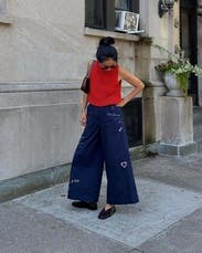 While I like the embroidery and find these pants very charming, I thought the fit was extremely unflattering. I think wide-legged pants look bad on me in general, but these were extra bulky feeling.