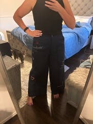 I’m speechless. They’re perfect. They fit perfect. This is rare! The length is just right for my petite frame, the wide legs don’t swallow me, elastic back of the waistband!!!!! High quality fabric! The designs are stitched on.