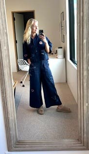 Love this dark blue “mechanic” vibes set! Lots of pockets, soft and comfortable and 6 was the perfect size for me. Wanted to keep!