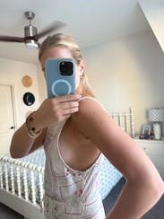 Oddly large armholes showed off my bra sides. Might be same for you depending on size you rent (I sized up due to availability and found it fit well on the body, my normal size might of actually been too tight). If you can go bra-less or have a halter bikini style bra in a fun color or lace it could look intentional and flattering. I wore a Skims bikini bra in nude color but didn’t love the look, bra showing seemed accidental. Would not rent again
