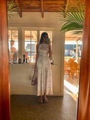 I love a dress where you don’t have to figure out the bra situation, unfortunately you could see my bra the whole night on both sides with this dress as the span across the chest is just a bit too short