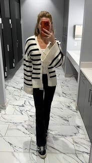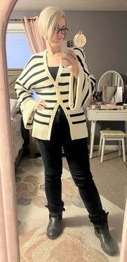 Horizontal stripes can be tricky but this was extremely flattering and curve enhancing. I had to take a star away because the sleeves were crazy long and hard to manage.