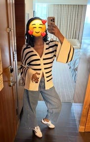 This knit is crazy comfortable and flattering. The sleeves were a bit long on me but I loved this