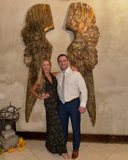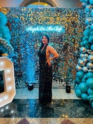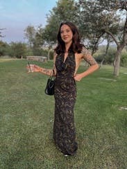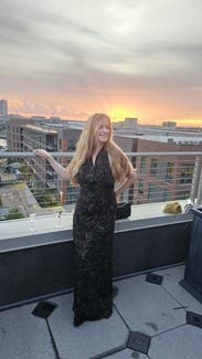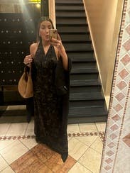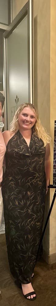 Granted this picture was taken late in the night with poor lighting, the pictures don’t do it justice! I wore this for a rehearsal dinner and it fit like a glove. It is so elegant + has a stunning open back. I got so many compliments! The dress is great quality but also so comfortable—it’s almost like a flowy legging material. As part of the IBTC, I was worried I wouldn’t fill the top enough but the girls felt secure!