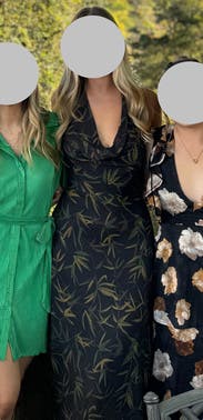 Loved this dress - material was incredibly flattering and stretchy. Beware of the narrow front - I'm a B cup and fit great but could imagine needing blob tape if you're larger up top!
