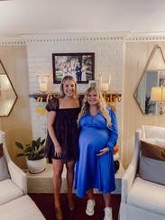 I wore this dress at 33 weeks pregnant to an April evening dinner. It was very comfortable through sitting and eating. The only concern was that the sleeves fell off my shoulders periodically and had to be adjusted and pulled up.