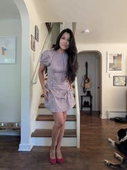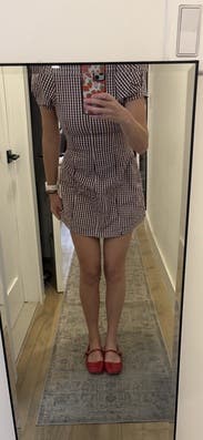 I wore bike shorts underneath because this was way too short for me to feel comfortable without them. But the cut of the dress is super flattering for my hourglass shape!