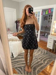 Got so many compliments on this dress, and it was super comfortable! Maybe size up if you have a larger chest, and it was a little short so just had to be careful bending down and when sitting