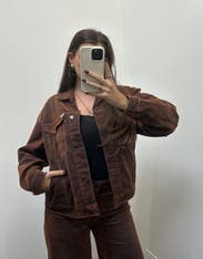 Super comfortable with the perfect oversized feel! The velvety material makes this jacket feel more chic. The color is incredibly unique and on trend for fall (the light stitching makes it stand out also). It looks incredibly stylish both as a set with matching jeans and on its own as a unique jacket. As a tall girlie, the small fit me perfectly...Definitely order true to your normal size! You can easily dress it up or down, and both pockets are surprisingly spacious. Plus, you can even wear it as a shirt by buttoning it all the way up. Highly recommend!