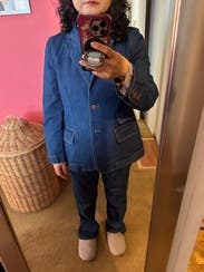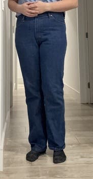 Jeans looked great but are standing jeans, not sitting jeans... fabric was very stiff!