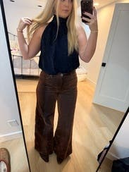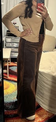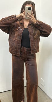 Love these jeans! Such a fun take on the classic Wrangler style. The velvet material is soft, unique, and can easily elevate your outfit. The wide leg is perfect...not too wide, so you don't feel like you're drowning in fabric. These jeans (and this set as a whole) is really fun and perfect for fall! It looks amazing paired with the matching jacket, but the jeans can definitely be styled on their own too. The sizing, both length and width, are spot on and they fit so comfortably.
