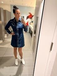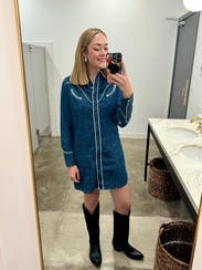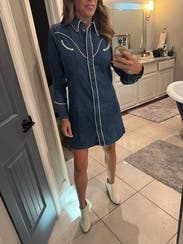 Wore to a western glam night. I wish I had sized down to accentuate curves more. Cute denim piece, lots of compliments