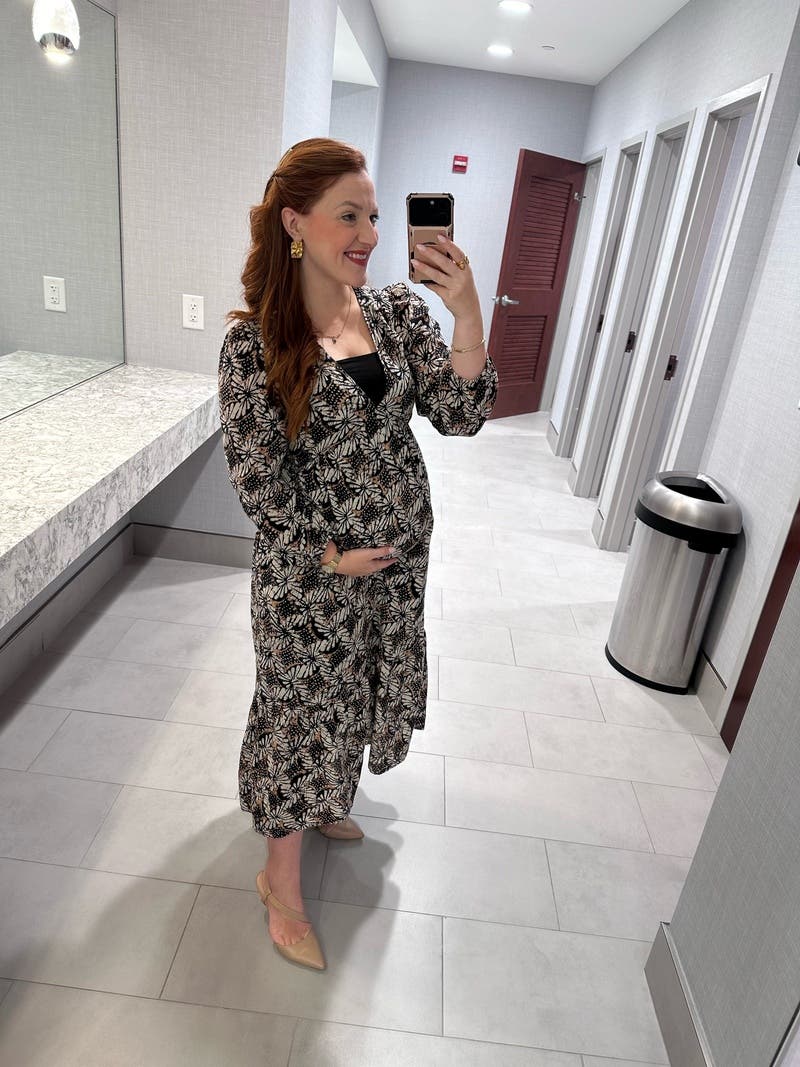 Black floral (100% Cotton). Casual dress. Long sleeves. V-neck. Pull-on closure. 52" from shoulder to hemline. Imported.