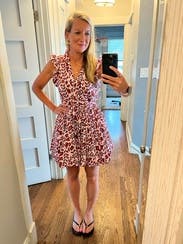 Really fun with a super flowy layered skirt, and really adorable print. Loved this one for the 4th of July and its work appropriate!