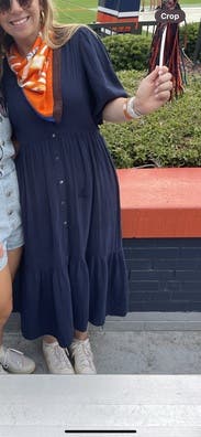 Wore this for an Auburn game with an orange scarf and it was perfect! So breezy and light and comfortable all day. It was a little bland without the scarf, but it still would’ve been cute without it.