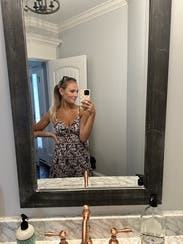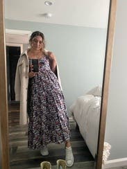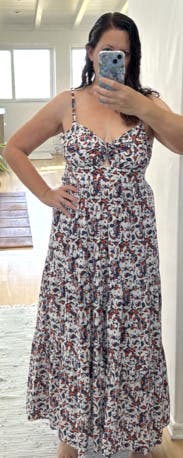 love the pattern on this dress and it’s so light and airy for summer days! It seemed a little stretched out in the chest area but still fit okay. I made it work!