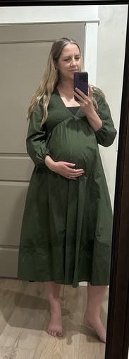 This looks like a tent, like a tent, and the fabric kinda felt like a tent. Another with you or said that this is a good option for pregnancy, but I highly disagree. I am currently pregnant and it just made this look even larger than more shapeless and tent-like. I can’t imagine who this would be flattering on, maybe someone very tall? It’s not a flattering oversized type of dress, it just entirely swallows you up.