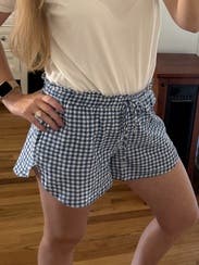 Blue plaid & check (98% Cotton, 2% Spandex). Shorts. Pull on. Inseam: 3". Rise: 10". Made in the USA. Country of origin designation as provided by vendor and/or manufacturer.