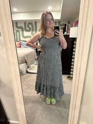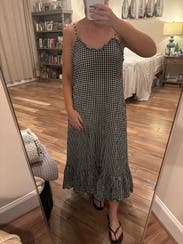 This dress was so cute and comfy. It has adjustable straps which is nice. The top part of the dress was a little tight but otherwise the fit was good. I got it in an XS and I think the S would’ve looked too big.