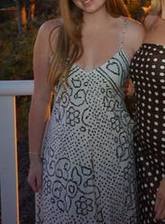 Loved this dress and wore it many times, plus I brought it on a tropical vacation. Perfect for a week in Tulum. The ties that are meant to tie in the back were so long that it dragged the floor. I did my best to make it fit. Super cute. It runs large. I'd recommend sizing down, or skipping if you cannot.