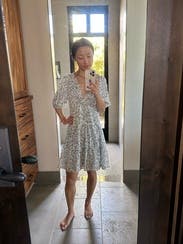 This dress is great… unless you’ve exclusively nursed 3 kids and have to wear a bra 🤣 or if you know how to use boob tape! Runs large, size down 1-2 sizes