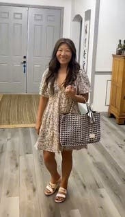 In my first month postpartum, I opted for a size up in everything, including this dress, favoring loose-fitting attire. Initially, it fit beautifully. However, as the rental period neared its end, it began to feel a bit too oversized. Nevertheless, I loved everything about this dress, wearing it four times with utmost delight. Paired it with simple white sandals for a polished summer look. Rent it!