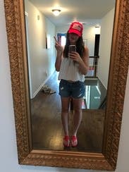 Great flowy little top that I wore for daytime social outings with friends. I paired it with denim shorts, a bright green crossbody bag and a cute summer hat. It was easy to wear with no fuss, super flattering in the shoulder area and breezy on a hot day. I wore a strapless bra for comfort, but could easily have worn a regular bra. It has tiny blue and red stripes that are barely noticeable unless you're up close. Adorable, fun top. Would rent again for vacay or summer casual events.