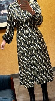 I am not big on print but was looking for something for work for the cooler weather. This was perfect and didn’t feel too big or long for my short height. Also wore out to a nice dinner.