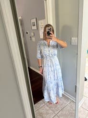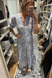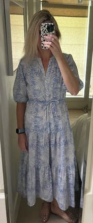 This is my second time renting this dress. It's light and airy--comfortable for hot weather. The tie waist lets you decide how much to cinch. Great vacation dress.