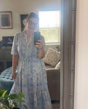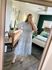 I rented this with a baby shower in mind but wore it to teach, to Bible study and to church. It was very lightweight which is perfect for this still very warm weather in Texas. I felt it was flattering and unique.