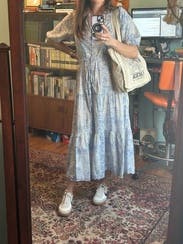 Very comfortable, lightweight, and flattering. Slightly sheer so I wore with a nude slip underneath, but it probably would have been ok without. I am between a S and M and the medium felt comfortable and not too large. I am short and the dress hit about ankle length and I could walk easily in flat sandals. All around a great rental.