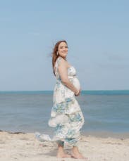 I wore it for my maternity photo shoot. It runs smaller in the chest. But it is a beautiful dress!