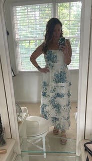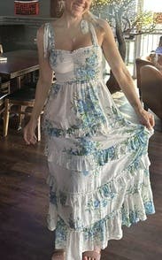 Hello Spring! I recently rented the Maxina Dress by Yumi Kim and it fit perfectly! I received many compliments on the dress, which is a beautiful white floral maxi dress with thin straps and a ruffled hem. The dress is made of a lightweight material and has a relaxed fit, making it perfect for warm weather. I would highly recommend this dress to anyone looking for a stylish and comfortable option for spring. The quality of the dress is excellent and it looks like it was made for me! I'm so glad I decided to rent it and I would definitely consider renting again in the future.