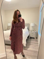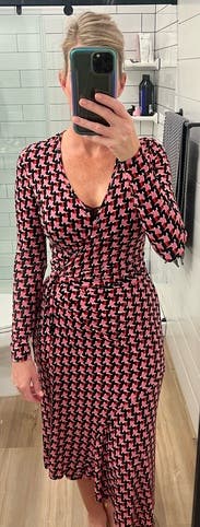 I wear a ton of DVF wrap dresses and really enjoyed this take on a wrap dress. It was comfortable and I enjoyed the uneven bottom more than I thought. It didn’t feel fussy.