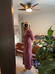 I’ve owned several dresses like this, and I like how forgiving the fit is, and this one had a cute pattern and interesting hemline. I also like the long sleeves. It required a safety pin at the bust, but that is typical for this type of dress.