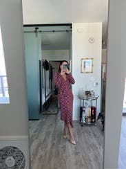 I don't have enough nice things to say about this dress. It's incredibly flattering, fun, and pretty. I wore it for work and then transitioned to drinks after dinner. I would 100% recommend this for my tall gals who want something flattering but not too form-fitting.